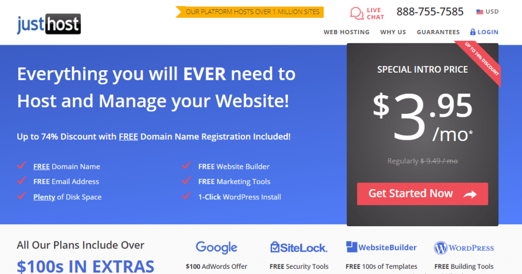 If you are looking for a hosting to create your blog or website, and you are a newbie you will surely need support support, JustHost is an excellent option. It has affordable plans, which become cheaper as you hire for longer. Your credit gifts for the most popular advertising platforms is undoubtedly a competitive advantage that puts you ahead of many of your competitors.